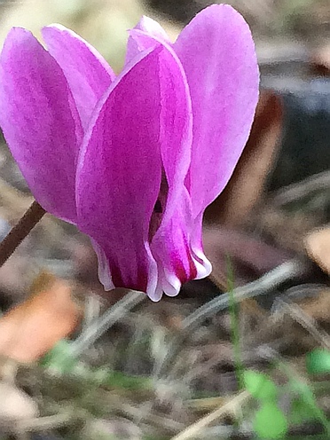 Hier auch - zwar müssen sich die Blüten der Herbst-Alpenveilchen durch dichtes Blattgewusel kämpfen, aber sie finden mehr oder weniger zielstrebig den Weg. :D