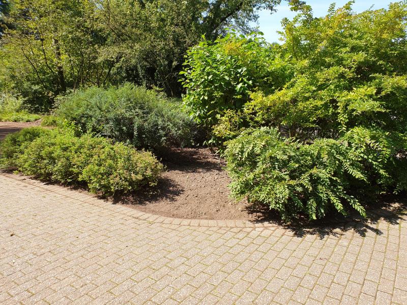 Die vorher nachher Bilder wirken auf einige evtl. rabiat. Aber Ackerwinde und Schachtelhalm lassen sich nicht bekämpfen wenn sie zb aus einer dicken Matte Cottoneaster wachsen, also gerodet. Jetzt kommen wir hin um denen immer wieder eins aufs Dach zu geben wenn sie sich zeigen und es ist wieder Platz für einige Stauden.