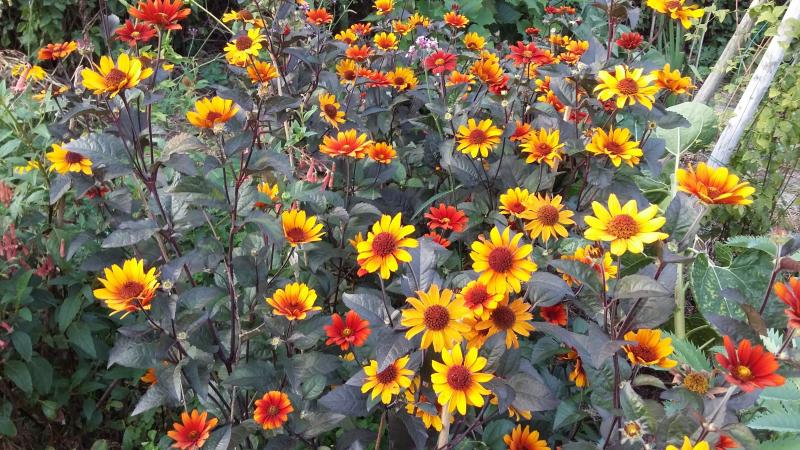 Im Forum gesehen und dann im Frühjahr gesät: Heliopsis "Bleeding Hearts ". Tolle warme Farben! Danke für den Tipp!