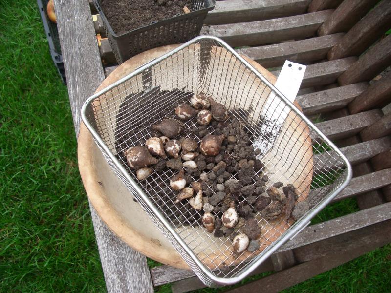 Allerdings ist bei wüchsigen Sorten mit größeren Zwiebeln das Gittertöpfchen oft schon nach einer Saison dicht gefüllt und man muss sie wieder teilen.