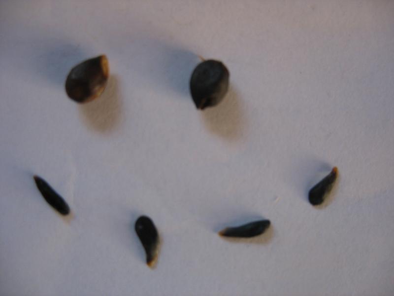 Hartmann schreibt zu den Marianne-Kernen: "gut ausgebildete, schmale, rehbraune Kerne", das Arche-Noah-Sortenblatt meint aber: "Samen nur teilweise gut ausgebildet, häufig unvollkommen, dunkelbraun länglich oval mit Dorn." Bei Boscs heißt es da: "teils gut entwickelte, ziemlich rundliche, schwarzbraune Samen". Also ich sehe bei mir rundliche, schwarzbraune, aber doch vor allem häufig unvollkommene Samen - also wieder von allem etwas. Was meint ihr?