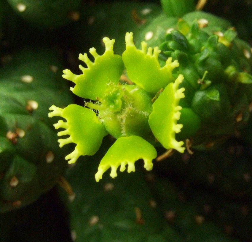 aber es geht bei Kakteen blütenmäßig auch etwas anders: Epithelantha.