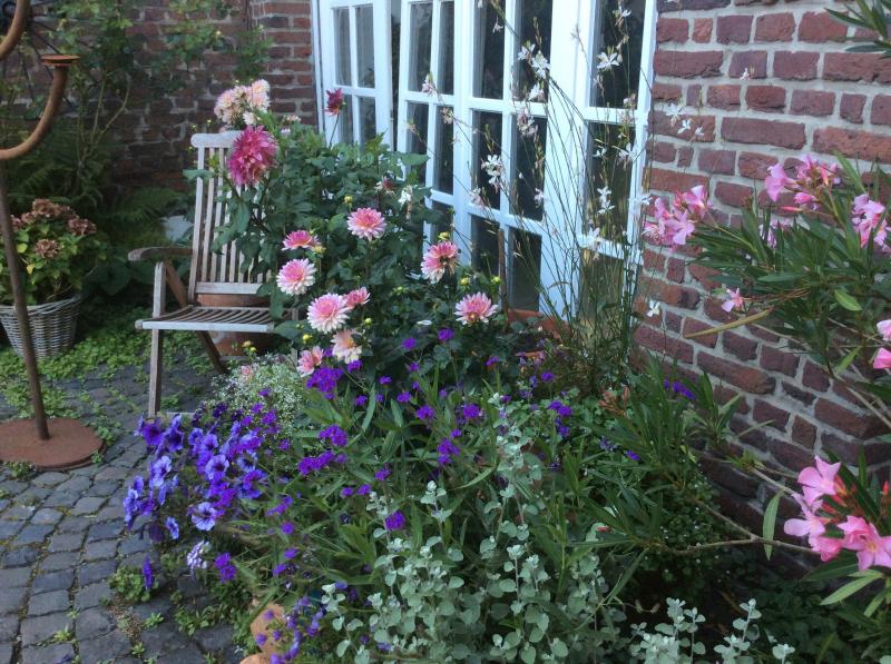 Hier gibts keinen Innenhof, dafür eine Terrasse und dort blüht tatsächlich allerlei, was sich vom Garten aktuell nicht sagen lässt (zu trocken).