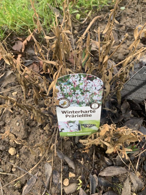 Die Stengel sind im Frühjahr immer zu schneiden, wie bei anderen Stauden auch. Die Frage ist, ob hinter dem Schild auch grünes zu sehen ist, das im Frühling austreiben kann. Wenn du die Gaura im Herbst gepflanzt hast, ist das immer eine Gefahr fürs Überleben, fetter und nasser Boden auch. Am liebsten überwintern sie in einem durchlässigen, kiesigen Boden.