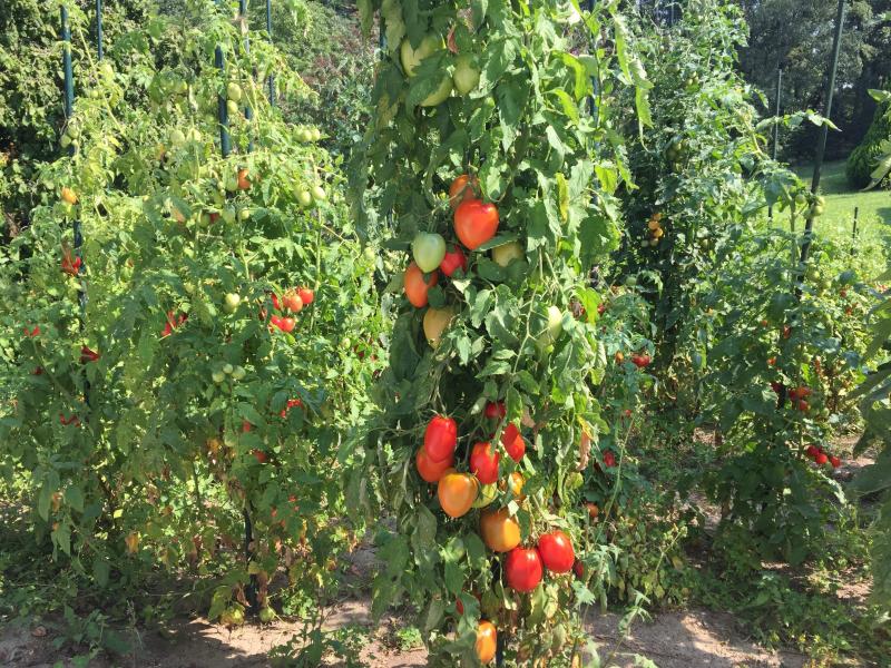 Meine Tomaten sind nicht ganz so üppig im Laub wie sonst, aber ich habe auch gut ausgegeizt. Manche Pflanzen sind etwas gelblicher. Aber auch in diesem Jahr bisher keine Braunfäule. Die Ernte setzte trotz später Pflanzung über eine Woche früher ein. Ab der 2. Augustwoche hatte ich immer reife Tomaten. Jetzt läuft die Ernte laufend. Habe schon vier große Gläser Sugo eingeweckt und ständig gegessen.