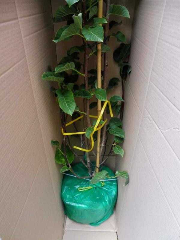 Ich bekam gestern von der Magnoliengärtnerei Lunaplant zwei Pakete von 2,10 m Höhe. Hier eines und die ausgepackte Pflanze: