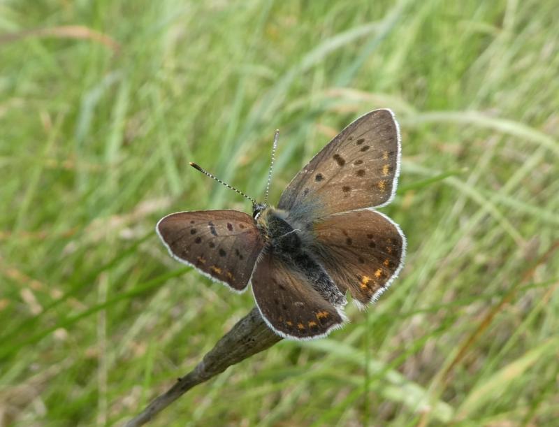 Und ein einsamer Brauner Feuerfalter, Lycaena tityrus sonnte sich.