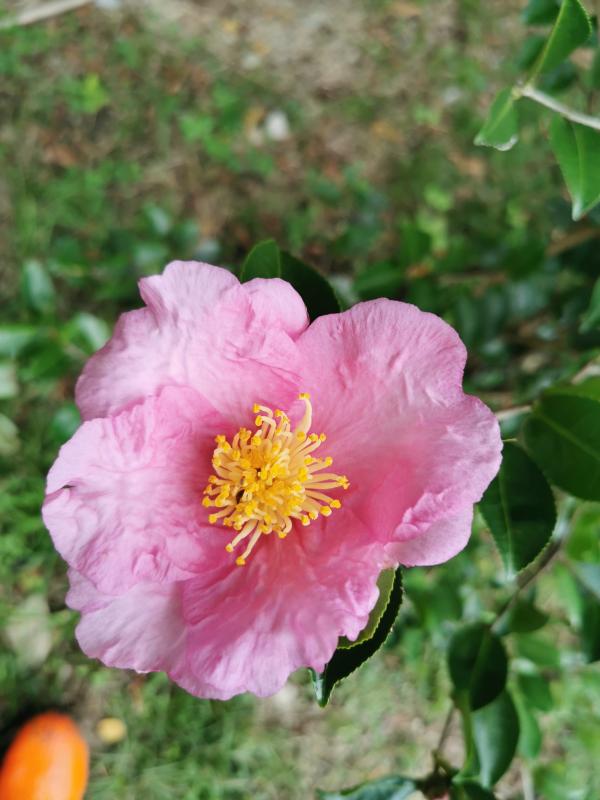 Hi-no-hakama. (Scarlet Skirt), (C.sasanqua), Ashizawa, Yagorô, 1898, Chabaika Taishû; Chûgai Nursery Catalogue, 1934: Bright pink, medium sized single. Wada, 1941, Garden Treasures of