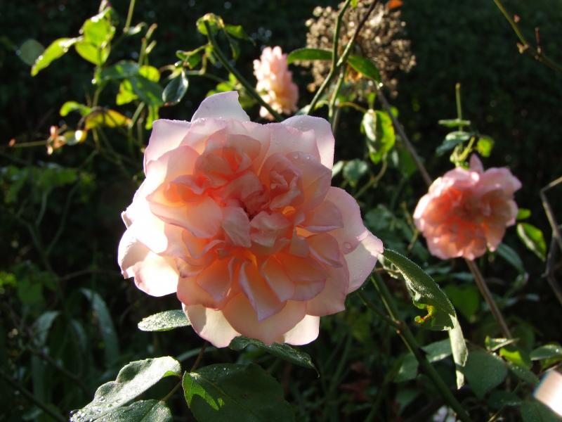 'Papa Gontier'hatte vor kurzem viele Blüten angesetzt,die aber im Dauerregen mumifizierten.Jetzt kommen aber noch ein paar neue Röschen.