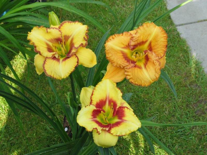 Als Keuzungspartner ist Ed Brown keineswegs so verbraucht.Der Vorteil von Ed Brown als Keuzungspartner ist, sie vererbt hohe gut verzeigte Stiele, flache offene Blüten und Rand.Nachteil, Ed Brown ist bei uns keine sehr harte Pflanze, deshalb muß man möglichst mit gut wachsenden keuzen.Ich habe mit Ed Brown je nach Partner fast Weiße mit Goldrand bis zu Roten mit Rand erhalten.Eine andere sehr gute Zuchtpflanze ist für mich Raspberry Beret. Als Pflanze hat sie Blüten mit zuwenig Substanz. Aber als Keuzungspartner vererbt sie Wüchsigkeit, hohe gut verzeigte Stiele und im Jahr nach der Aussaat Pflanzen mit 2-3 Stielen. Ihre Farbe hat nur ein Sämling geerbt, aber der hat eine sehr gute Substanz. Aber sonst habe ich nahe Weiße, zitronengelbe und sogar pflaumenfarbige Sämlinge erhalten.