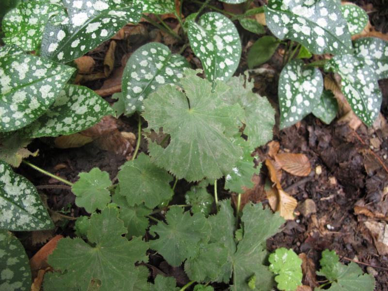 Veilchen- und Alchemillalaub ist ebenfalls beliebt, die Pulmonaria unangetastet, was mich wiederum an der Schneckentheorie zweifeln läßt :-\
