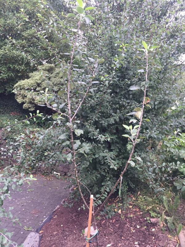Erst mal Danke . ja Pfahl fehlt noch. Der Baum soll eigentlich 3 Meter hoch werden und im oberen Bereich auch etwas Sichtschutz bieten. Tragen wird er wahrscheinlich eh nicht viel da Nordwest Lage und wenig Sonne. Ich denke ich mache den Schnitt im Februar wie empfohlen. Schaun wir mal wie es wird.