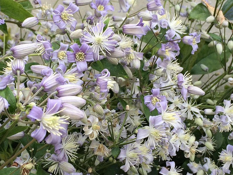 Bleibe bei Clematis jouiniana Mrs.Robert Brydon, Bilder im Netz passen und an das Namensstückchen 'Brydon' kann ich mich noch gut erinnern.