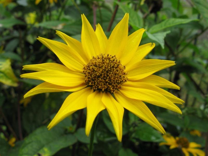 Und diese Blüte habe ich vor ein paar Tagen im Garten entdeckt. Die Blüten mit den zugespitzten Zungenblüten sollte man weiter beobachten.