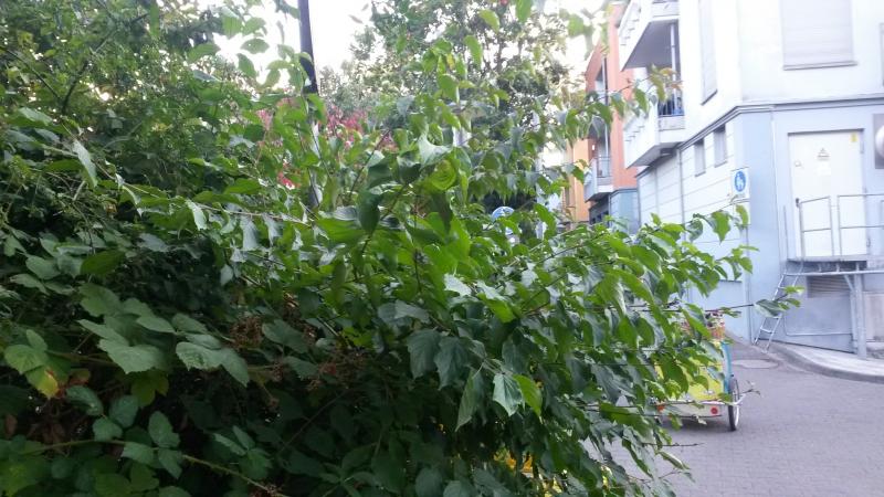 Der gesamte Busch sa so aus, als würde er aus zwei oder drei Büpschen bestehen. Weiter oben sahen die Blätter und Früchte etwas anders aus, die Beeren hingen z.B. mehr herunter. Da bin ich aber nur an wenige Zweige drangekommen. Geerntet habe ich daher hauptsächlich nur von weiter unten.
