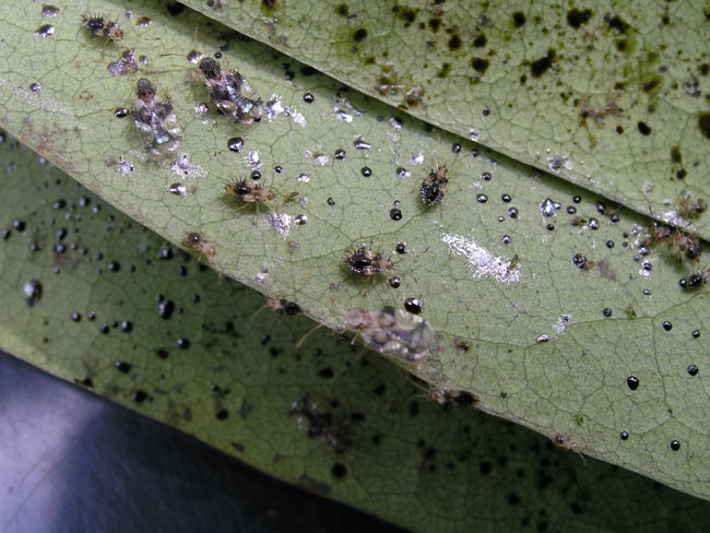 Das sieht nach der Rhododendron-Hautwanze aus.