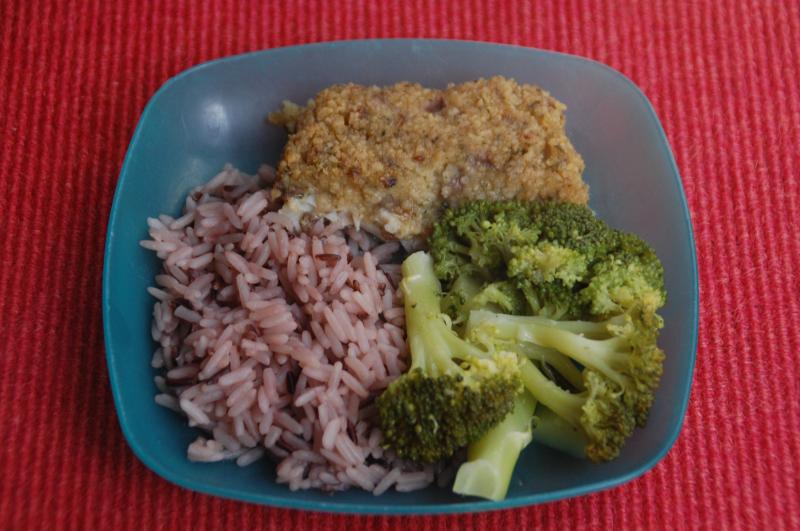 schwarzer und weißer Reis mit Broccoli und Schlemmerfilet 'Champignon' (erschreckend süß das Zeug :()