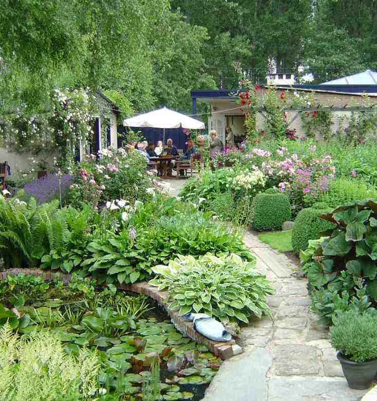 Oft zu sehen in Belgien und den Niederlanden: Erhöhte Wasserbecken und meist flach. Das Gärtenpaar zeigte in seinem Garten auch Künstler mit Skulpturen und Malerei.