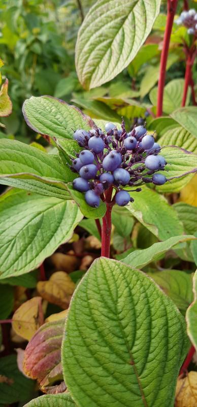 Um welchen Hartriegel handelt es sich bei meinem Foto? Mich wundert, dass er bläuliche Beeren hat.