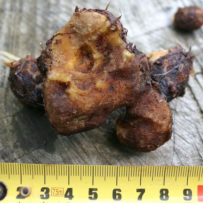 mal wieder ein beispiel für die regenerationsfähigkeit von arisaema, hier arisaema speciosum. die "knolle" bzw. das was von ihr nach abschaben der faulen stellen letztes jahr übrig blieb hat 5 neue brutknollen gebildet (sieht man nur zum teil, sind auf der rückseite)