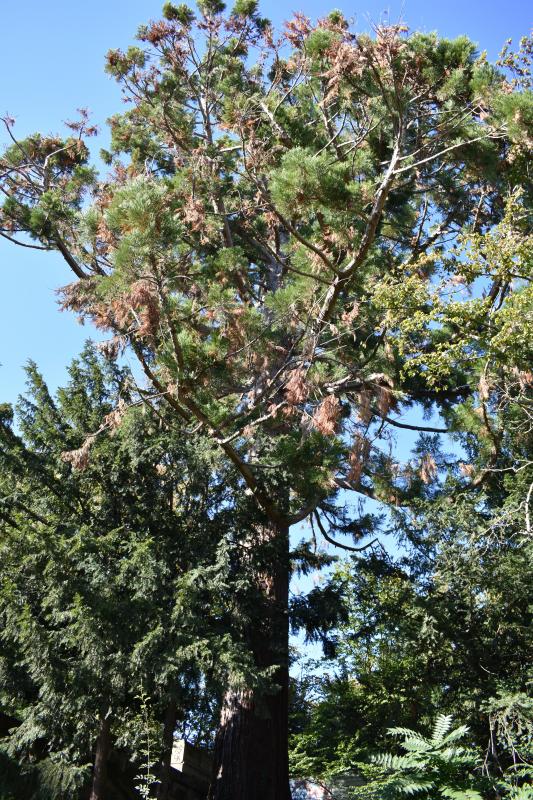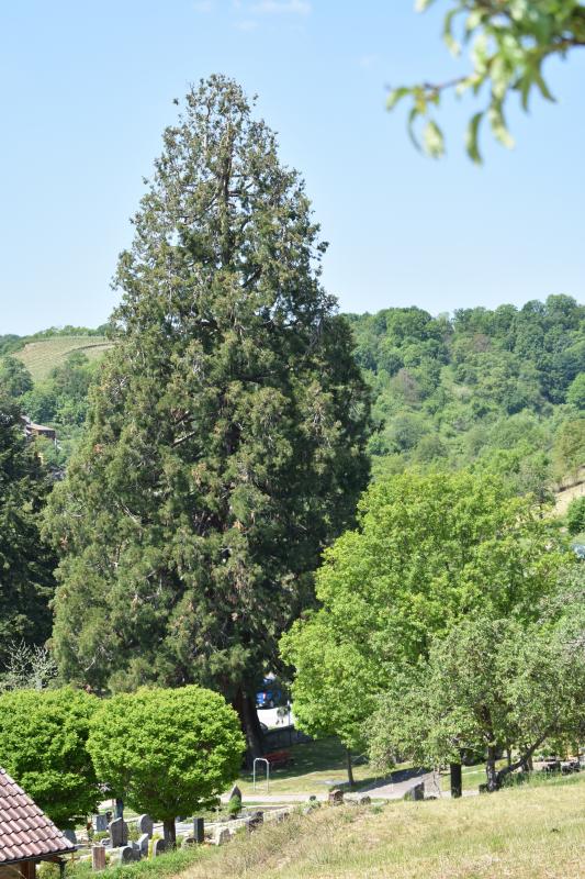 Der Mammutbaum der Villa Moser mal aus einer ganz anderen Perspektive, er überragt alle Bäume des Parks.