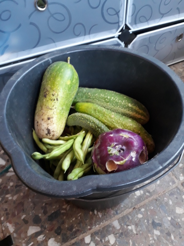Die Gurken und Bohnen gehen langsam zu neige. Die letzten Kohlrabi stehen noch. Tomaten hängen noch sehr voll.