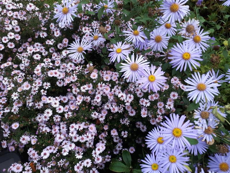 Herrlich, Eure üppig blühenden Asternbüsche. So weit sind sie hier momentan noch nicht. Meine Lieblingsaster 'Nachtauge' beginnt erst ganz zaghaft, ihre schöne Farbe zu zeigen. Nach 5 Standjahren hat sie in diesem Jahr erstmals ordentlich zugelegt und wird in diesem Herbst an mehreren Stellen zusammen mit diversen Gräsern blühen.