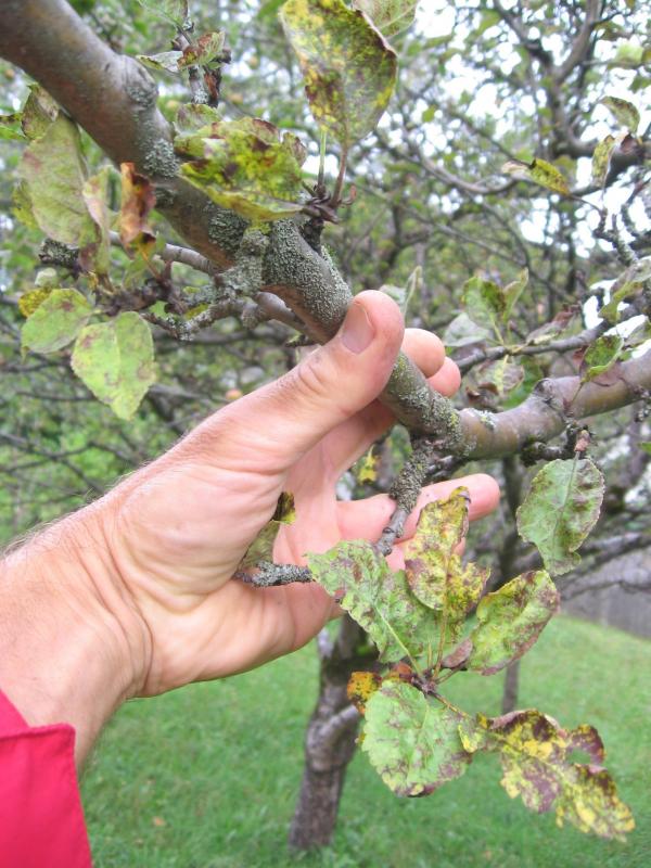 Nochmal: Der Adersleber Kalvill wurde definitiv nicht gegen Marssonina oder irgendeine andere Pilzkrankheit behandelt!