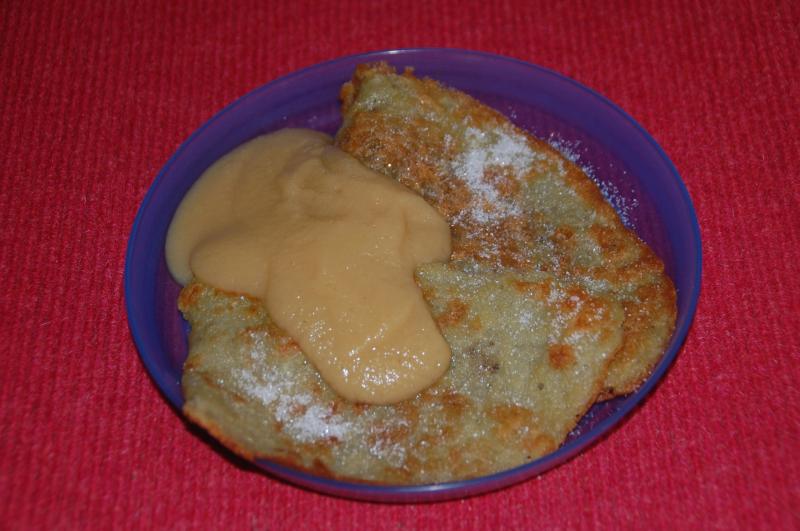 Heute kochte der Sohn - es gab Kartoffelpuffer mit Zucker und Apfelmus. Auf speziellen Wunsch auch einmal mit (noch nicht ganz durchgereiftem) Kimchi 8).