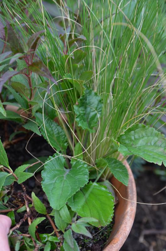 Was hat sich hier im Topf ausgesät? Passt bislang gut zum Rest, aber es sollte sich natürlich nicht zu breit machen...
