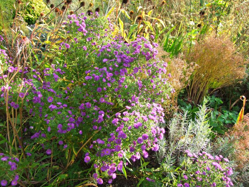 'Herbstbrokat' Legt hier überhaupt kaum zu und kippelt bei mittlerer Höhe.Blüht ziemlich schütter .Die Farbe ist leuchtend und nicht ganz getroffen.Verzichtbare Sorte.