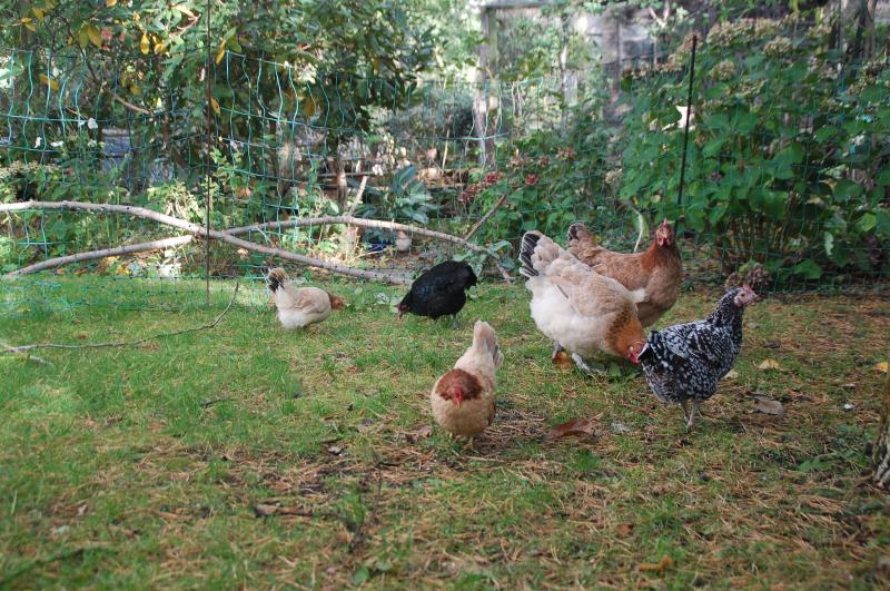Die Hühnchen müssen mir bei der Schädlingsbekämpfung unterm Nussbaum helfen: