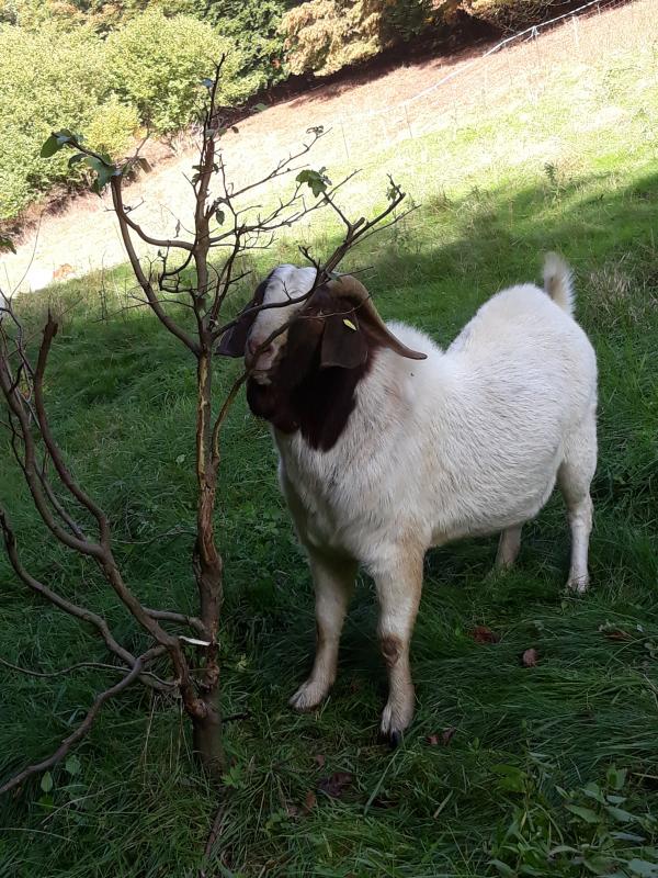 Zur Diskussion Horn ja oder nein (neulich durfte ich mir erst eine Belehrung anhören, wie unmöglich es ist wenn Skudden Hörner haben) noch ein Bild aus der Landschaftspflege. Es gab in der Region eine Burenziegenherde, die die Hörner ausgebrannt bekam. Das ist dem Himmel sei Dank Geschichte. Wenn man mal den Tierschutzgedanken zur Seite lassen wollte (wir sicher nicht, wir finden Hörner für das soziale Verhalten sehr wichtig), bliebe ja mindestens in der Landschaftspflege noch dieses Argument: