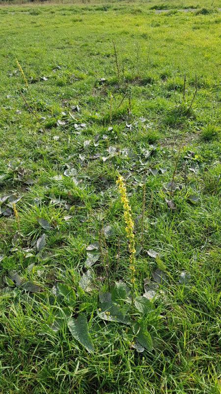 Ich denke, die Königskerze ist Agrimonia eupatoria, Odermennig.