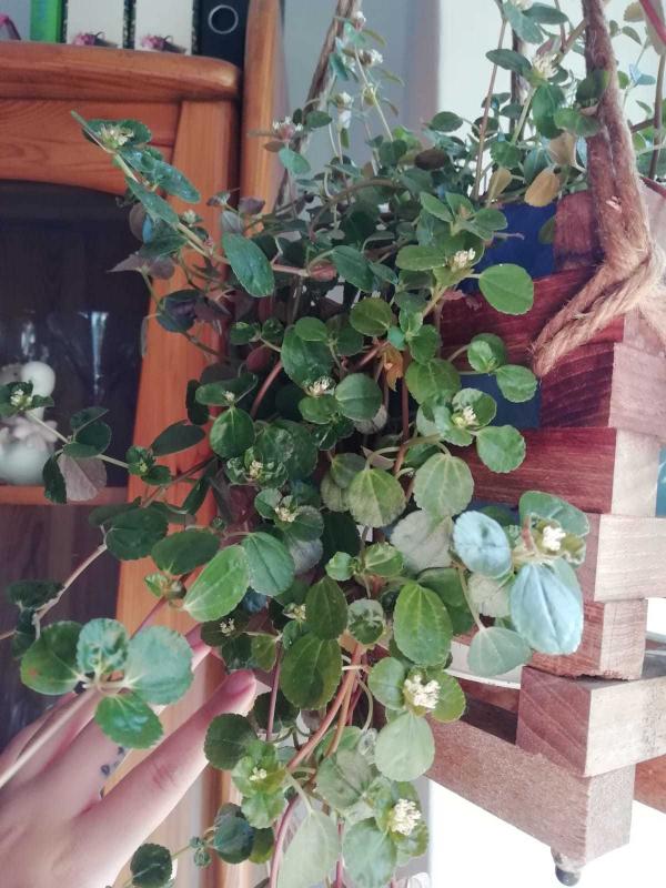 Bei der Hängepflanze von Auricular denke ich an Pilea. Die Blüten scheinen mir zu denen von P. depressa hier sehr ähnlich zu sein.