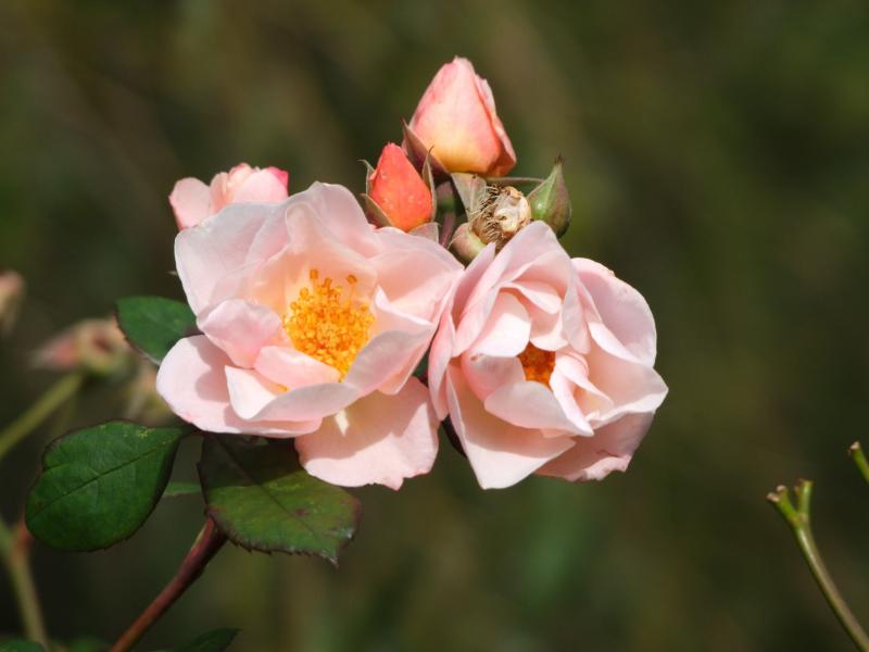 Ich hatte sie noch nicht beschnitten, und deshalb gibt es Blüten und Hagebutten gleichzeitig.