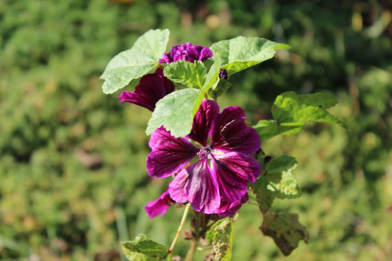 Malva sylvestris blüht zwar im Herbst nicht so lange wie V. bonariensis, fängt dafür aber früher an und wird ebenfalls gut besumst. Versamt sich ohne lästig zu werden.