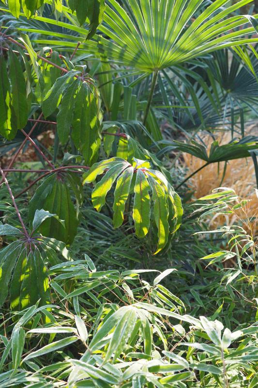 Ich habe verschiedene Schefflera in meinem Garten in Corconio (Lago d'Orta) (Zone 8b bis 9a je nach Mikroklima) ausgepflanzt. Hier die von Crug farm bezogene Schefflera macrophylla :D