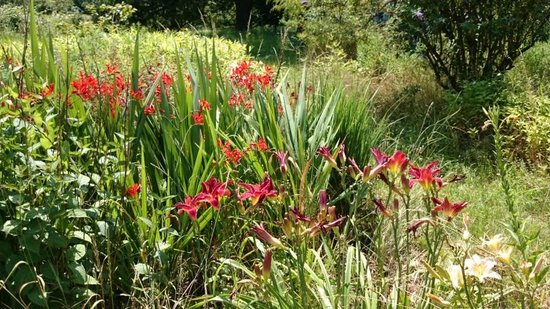 Das Foto mit den feurig roten Taglilien und Montbretien gefällt mir ganz besonders, die leuchten im Moment so herrlich im hochsommerlichen Garten! :D