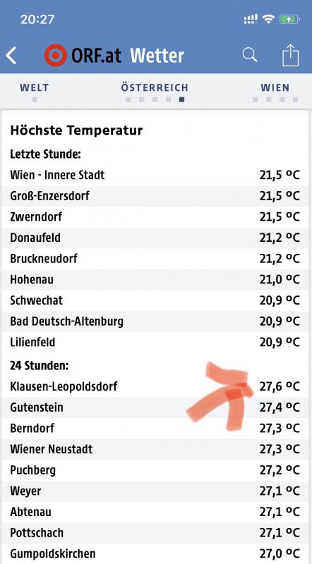 32,1 Grad hatte es Maximal im Schatten im Feigenmikroklima heute bei mir. 27,x waren es offiziell im Wienerwald heute - Temperaturrekord für Oktober laut Nachrichten. Bin es gewohnt in der Früh 4-5 Grad über Wien-Auhof Mariabrunn zu liegen. Dort sammelt sich die kalte Luft in der Senke. Ich wohne auf einem ehemaligen Weinberg-Südhang - hat mir ein alter Purkersdorfer vor kurzem erzählt, der Weingarten wurde aber irgendwann zum Baugrund umgewidmet....... Bin ca. 30m oberhalb der Talsenke südlich des Wienfluss.