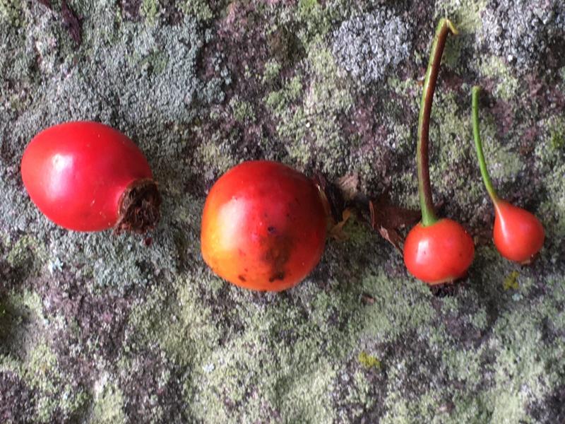 Hier sind sie auch nach 10 Jahren noch der Meinung, daß rote Früchte ungenießbar sind. Mir solls recht sein, neben Hagebutten und Solanum dulcamara bleiben auch Erdbeeren verschont :)