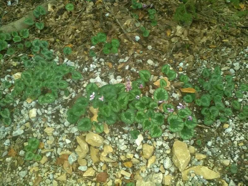 talseitig von der forststraße war es sehr erfreulich, da wurden unmengen von knollen verschüttet, die aus enormer tiefe herauswachsen, nur zyklamen, alle anderen pflanzen habe das nicht überlebt, ich klaubte die kissel weg bei einer schönen pflanze, nach 25 cm gab ich auf