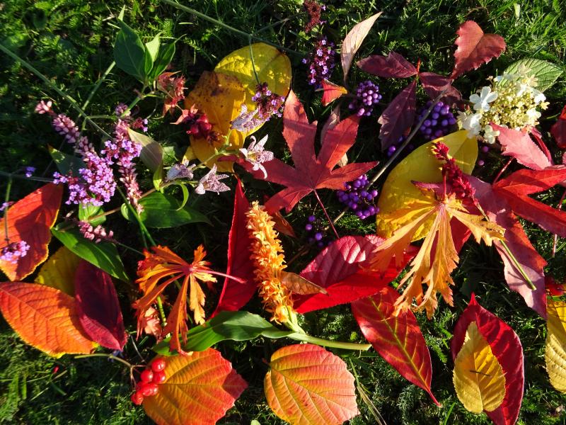 Die Ahorne in den Töpfen am Eingang sind nun schon fast unbelaubt, gerade färben sich die Hosta prachtvoll gelb, aber die Fuchsien denken offenbar noch lange nicht ans Aufgeben.