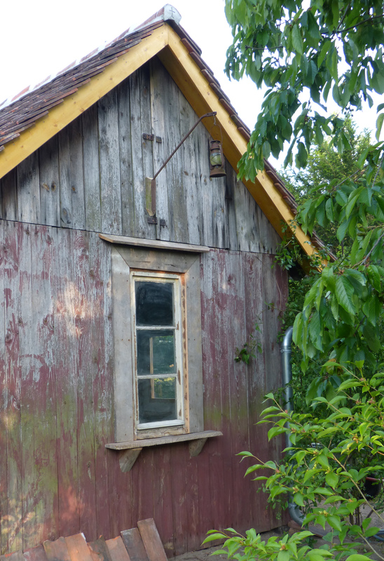 Nun sollte es ja nicht einfach weiter der Schuppen zum Vollrümpeln sein, sondern tatsächlich auch ein nutzbares Gartenhäuschen werden. Der Holzwurm war oft zu Besuch und wir saßen im Schuppen, sinnierend, wie er wohl künftig aussehen soll. Mit jedem Palaver kam uns eine neue Idee, oftmals eingeleitet mit den Worten "Ich habe da ja noch irgendwo dies und das...". ;D