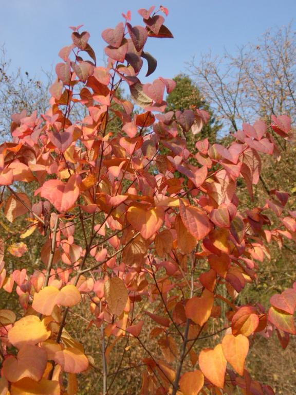 ..und duftet er nach Lebkuchen, Paw paw? Anscheinend wird dieser Duft ja nicht an jedem 'Cercidiphyllum japonicum' wahrgenommen, Eine sehr schöne Herbstfärbung an Deinem Exemplar! Bisher sah ich ihn nur mit gelbem Herbstlaub, was allerdings auch weithin leuchtet.