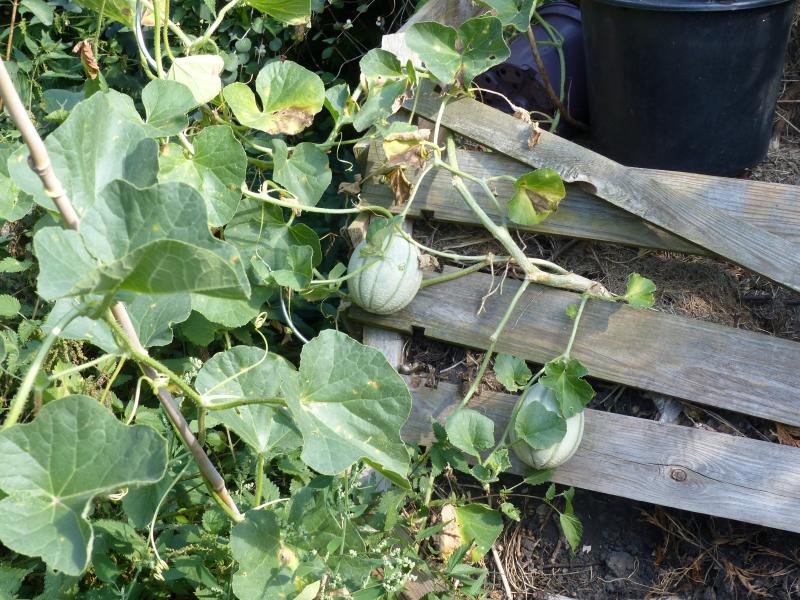 Die ungewollten Cantaloup waren am witzigsten. Mitte Mai gekeimt aus einer der ersten Supermarktcantaloupesamen, die achtlos auf dem Kompost landeten. Die Pflanze war mit Abstand am gesündesten und starkwüchsigsten. 2 Früchte angesetzt, leider viel zu spät. Habe sie auch bis zur kompletten Vertrocknung der Pflanzen drangelassen und anschließen noch 1-2 Wochen in der Wohnung in der Obstschale bei Äpfeln gelagert, dann fingen sie an zu duften. Geschmack ganz nett, aber leider auch nicht richtig reif...