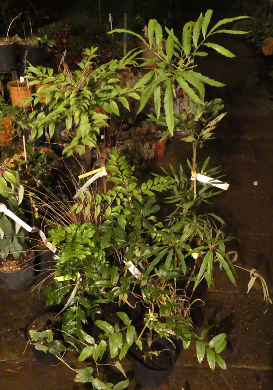 Hier kam heute eine (vielleicht letzte?) Lieferung von Pan Global Plants an. Bei Bestellung kennt man ja nur die Topfgröße. Umso mehr macht dann das Auspacken Spaß, wenn z. B. Mahonien zum Teil schon ca. 1 m groß sind.