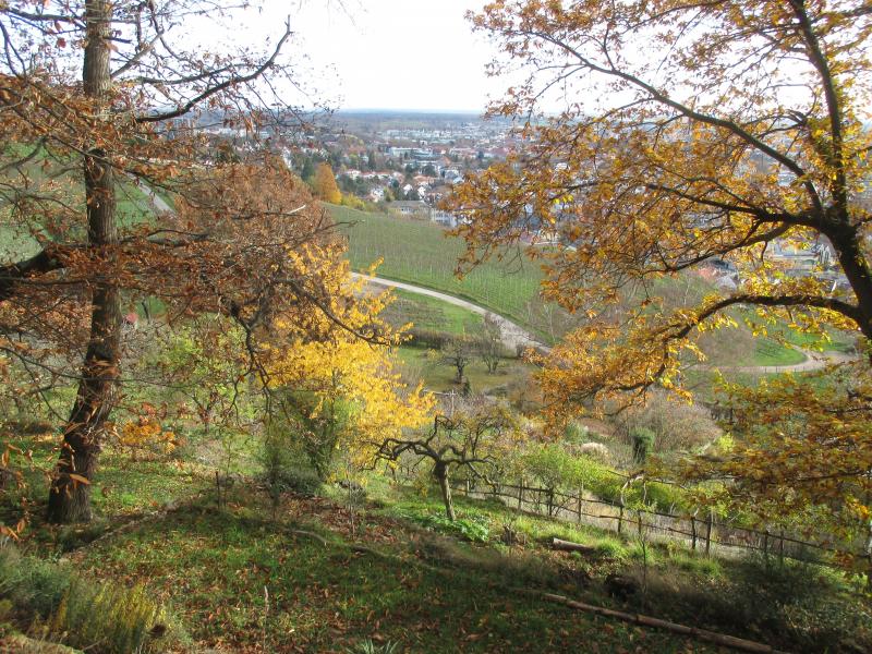 Ja die Eßkastanien haben ihr Laub noch nicht vollständig abgeworfen und in der Mitte sieht man eine Wildkirsche.