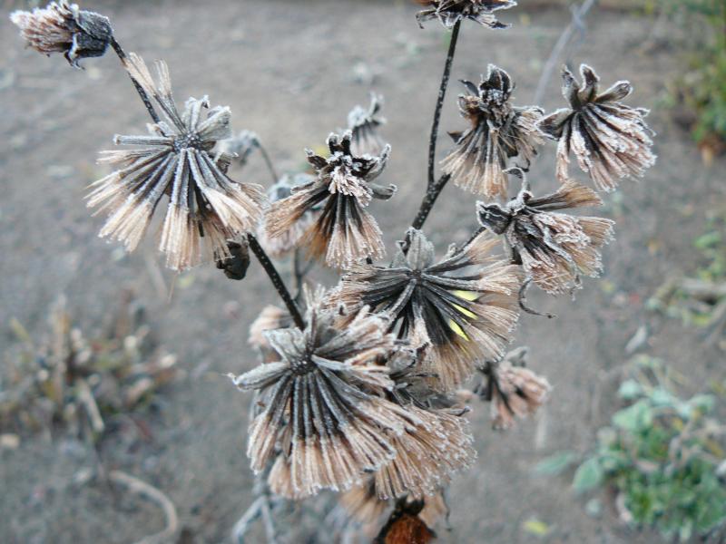 jetzt habe ich das ganze Thema durch, super schöne Bilder, aktuelle von Borker mit Raureif. Und jetzt die beiden von Vernonias, so adrette Flauschbällchen. Ich habe ein paar Vernonias über die Jahre probiert, sie sind etwas launisch gewesen ohne Bewässerung im Sommer. Dieses Jahr ist mir die Variationsbreite der Samenstände aufgefallen. Farbe und Größe sind unterschiedlich, ein Braun auf kräftigen Stängeln oder ein Beige auf zarteren. Ich muss mal nachschauen, was ich an Sorten und Arten habe.