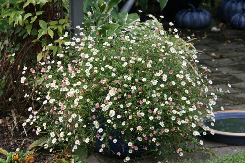 Hatte Erigeron k. in Töpfen im Garten verteilt, damit es sich aussamt. War nicht so'n durchschlagender Erfolg. Die blühen noch. Ueberleben die den Winter, wenn ich sie jetzt in die kalte Scheune stelle ?